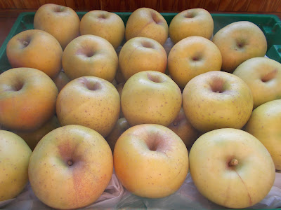 We now have over 200 pounds of harvested #1 'Gold Rush' apples, and over 100 pounds of harvested #2 'Gold Rush' apples, packed and ready for sale in our cooler. #1 'Gold Rush'
